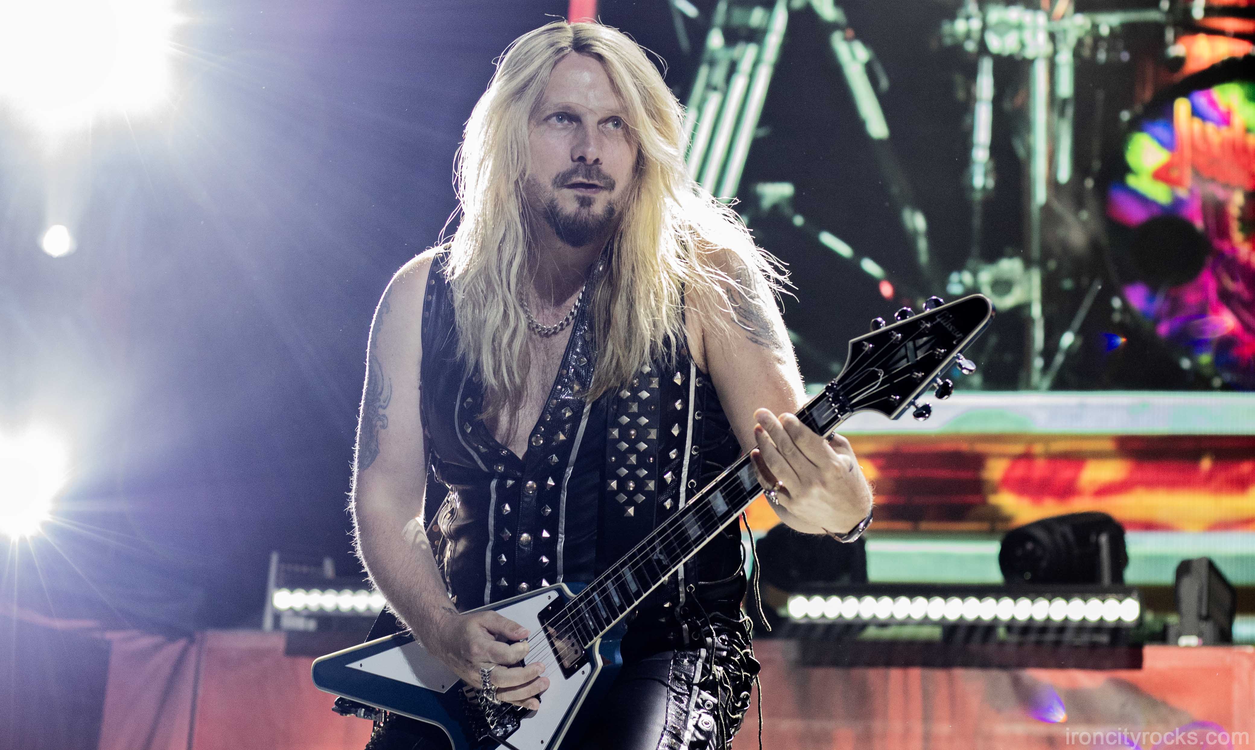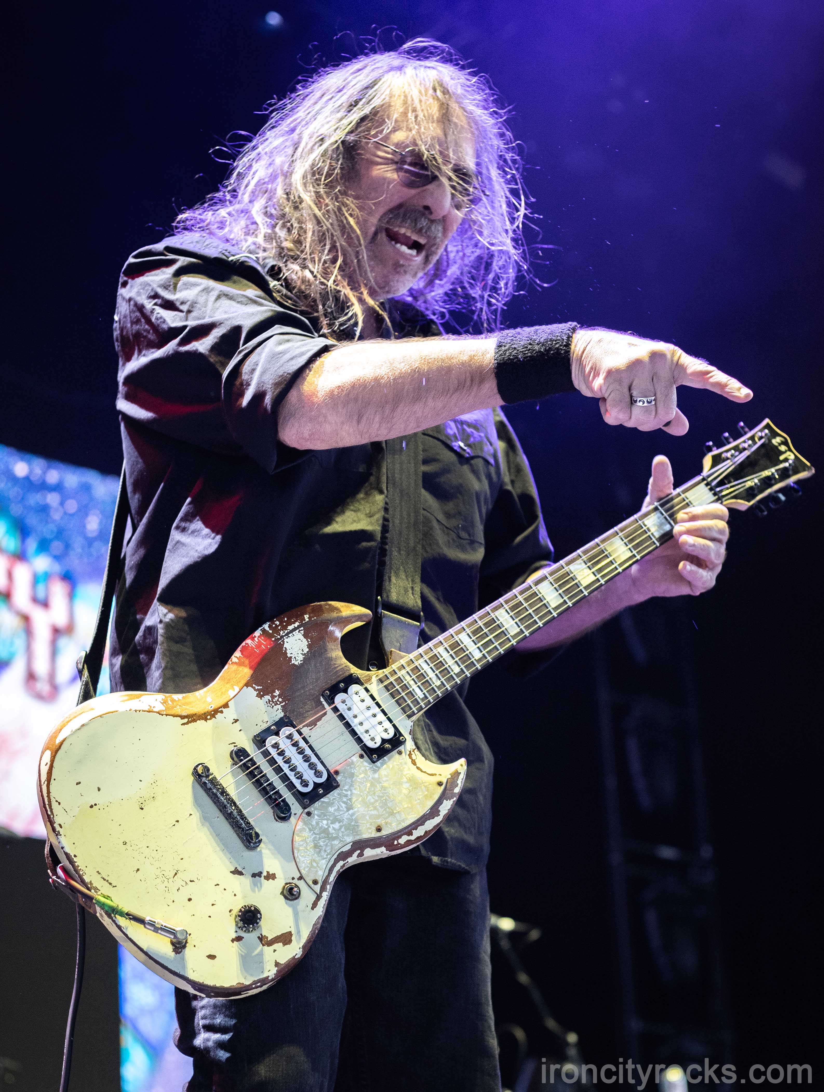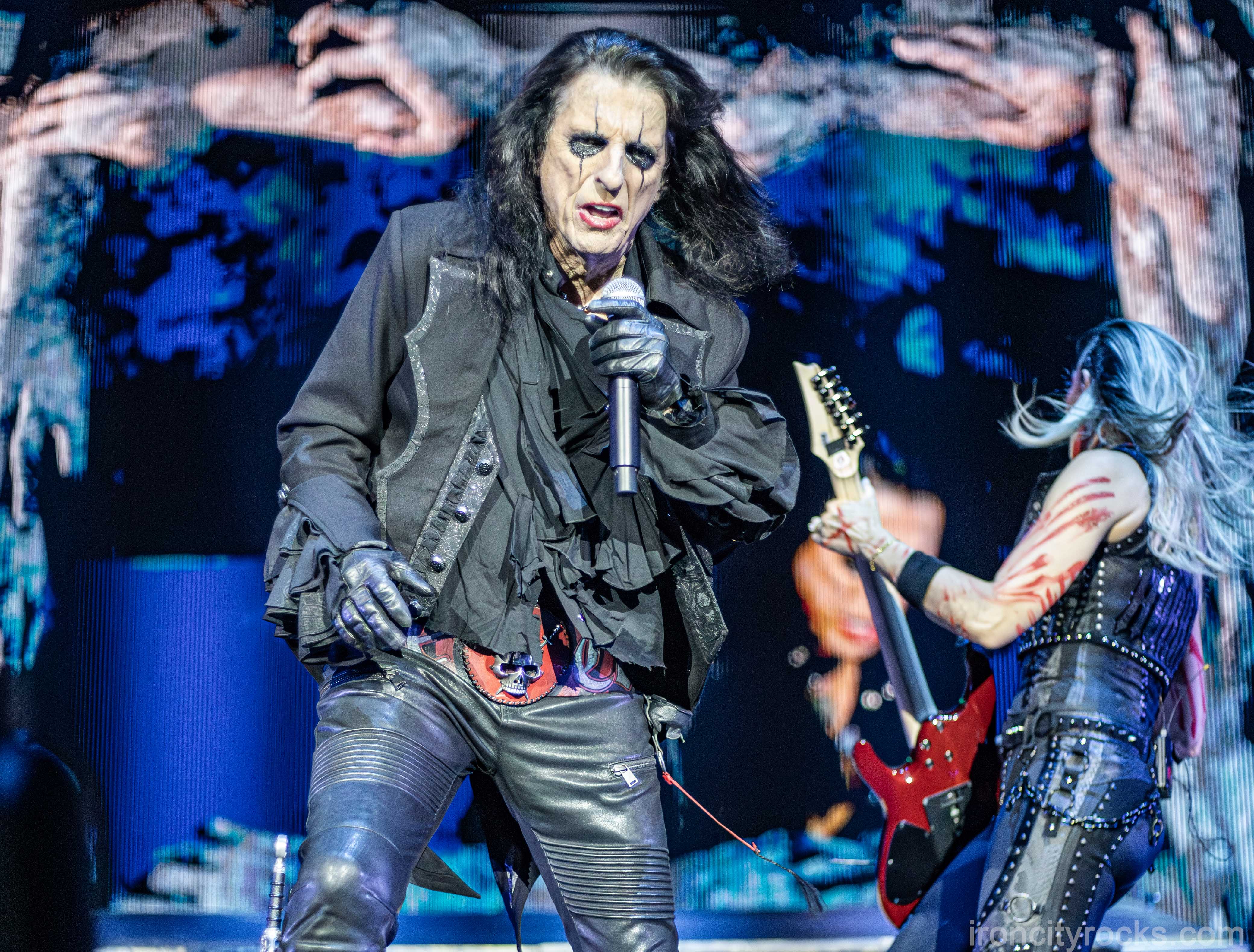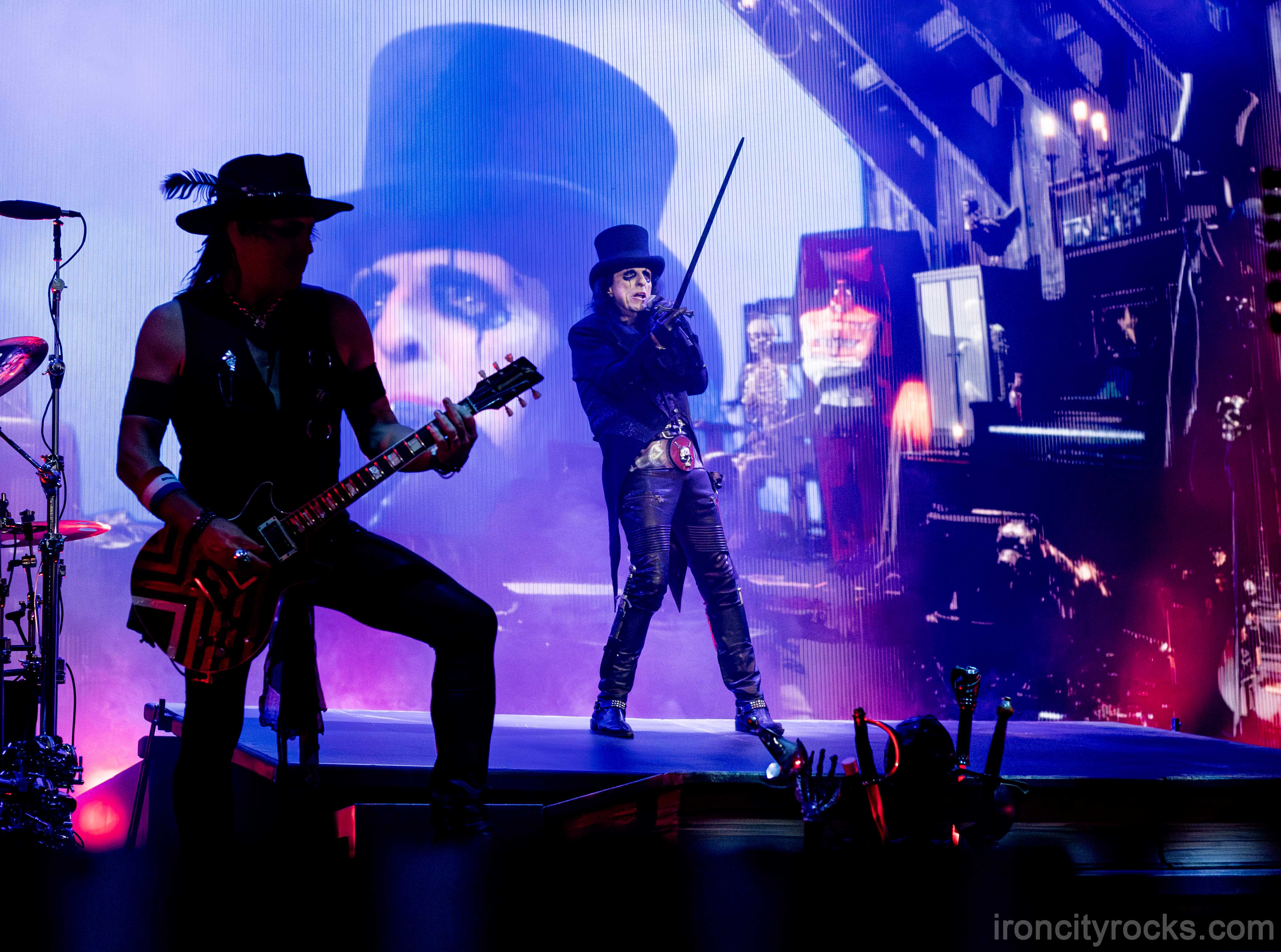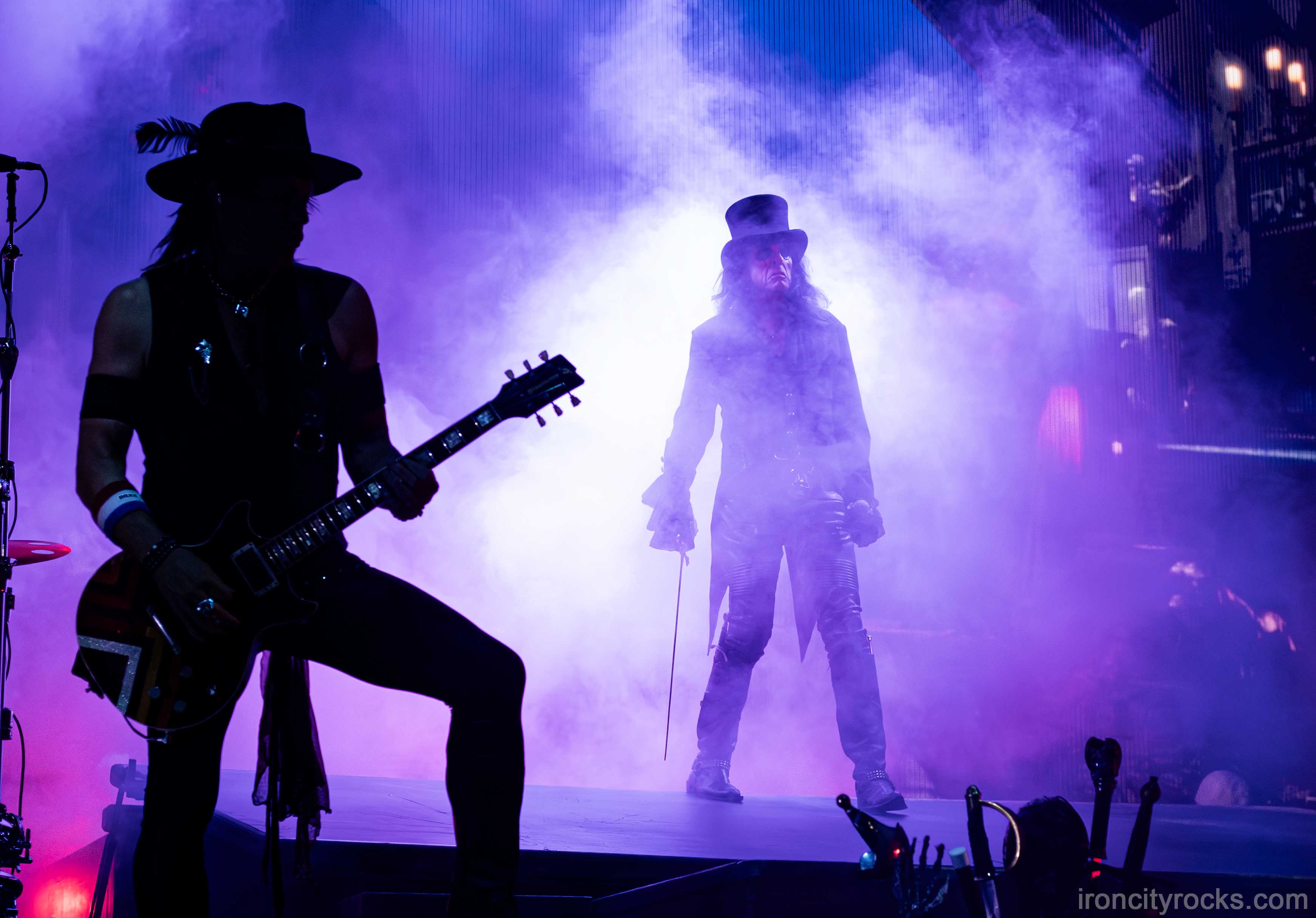 The mighty Judas Priest took the stage when the sun went down in support of their new album “Invincible Shield” and in celebration of 30 years of the “Painkiller” album on the Shield of Pain tour. The show opened in full throttle with “All Guns Blazing” as Rob Halford took center stage to belt out the opening vocals before the whole band kicked in with power and might. Without letting up Priest kicked into the hard hitting “Hell Patrol” followed by 1982s “You’ve Got Another Thing Comin’” (one of my top Priest songs). As I stood in the pit taking pictures I just couldn’t help myself but to be completely absorbed by Judas Priest style heavy metal and all the power it brings – it was a surreal moment for me as a photographer to be so close to such a legend in Rob Halford, a true metal god and one of the last few that remain in this world. As I returned to my seat to the epic sounds and speed of “Freewheel Burning” it was time to go break that law and get the crowd going with “Breaking the Law” straight off of 1980s “British Steel”. Returning to the Painkiller album on the next two tracks “Touch of Evil” and “Nightcrawler” saw that band in absolute kill mode with dueling guitars, solos of monstrous proportion and the mind blowing timeless vocals of Rob Halford. Up next was a deep cut that Priest dusted off for this tour, “Solar Angels” from 1981s “Point of Return” with the classic hard rock vibes and strong guitar chords. Priest opened the “Gates of Hell” from their new record, a song that would fit perfectly in the 80s priest tracklist followed by the dimming of the lights and the intro tape of “The Hellion” to a roaring crowd eager for seeing the show through our “Electric Eye”. Rob pulled a chair up stage left to talk to the crowd about how every year we lose more rock and metal royalty, including the metal god Ozzy Osbourne who we lost a short time ago. In honor of those that we lost what better song to play than “Giant’s in the Sky”. Scott Travis (drummer) kicked off the next song with the title track “Painkiller” with the amazing, insane and unworldly screams of Rob Halford who at 74 years old is just out of his mind and on another level as a vocalist. The encore saw Rob revving up his harley and strolling out the thrashing of “Hell Bend for Leather” followed by the commercial hit “Living After Midnight”. Judas Priest came to melt the faces off of those in attendance and set the stage perfectly for Alice Cooper.