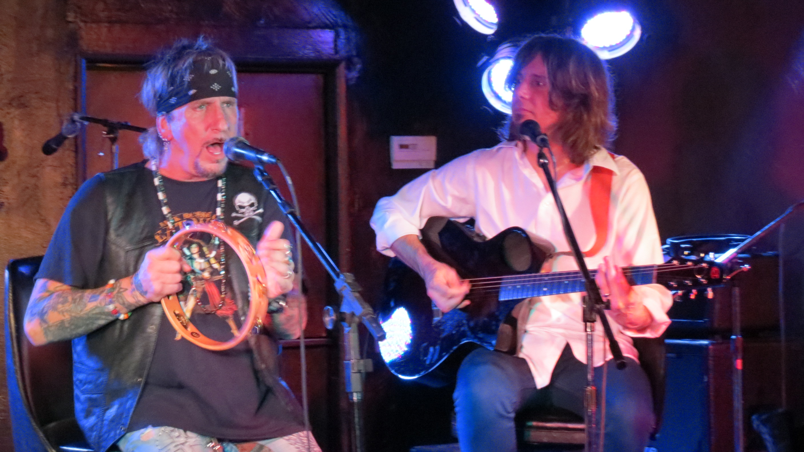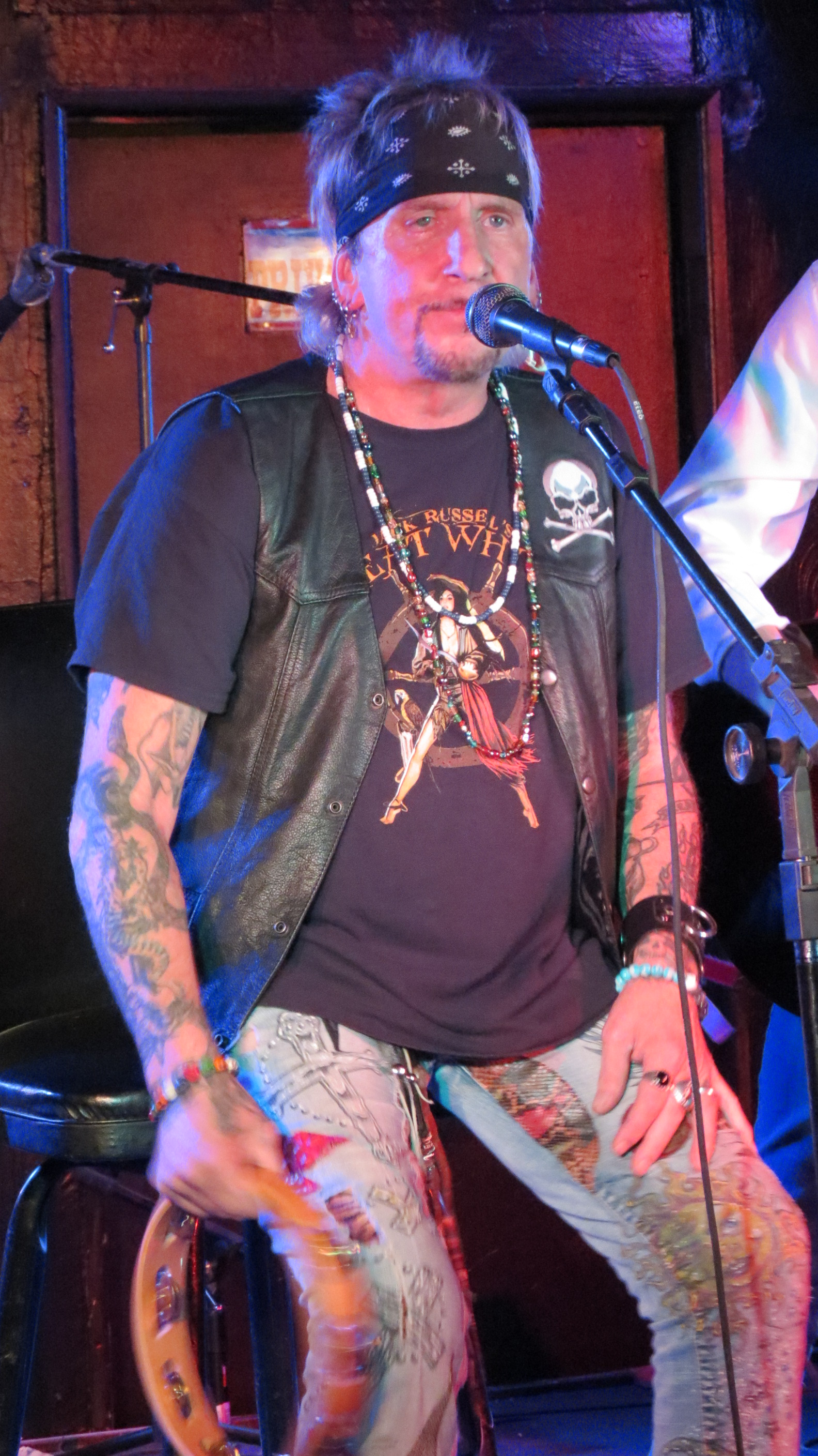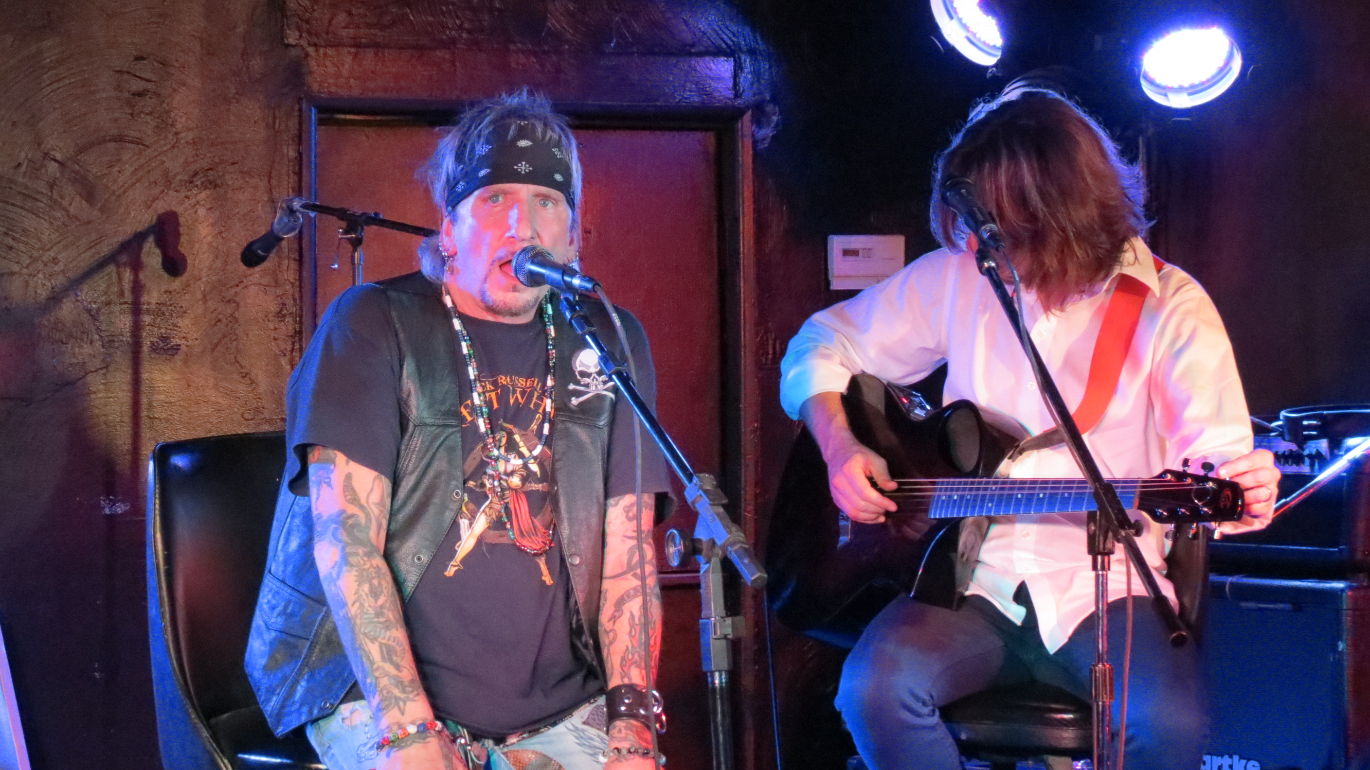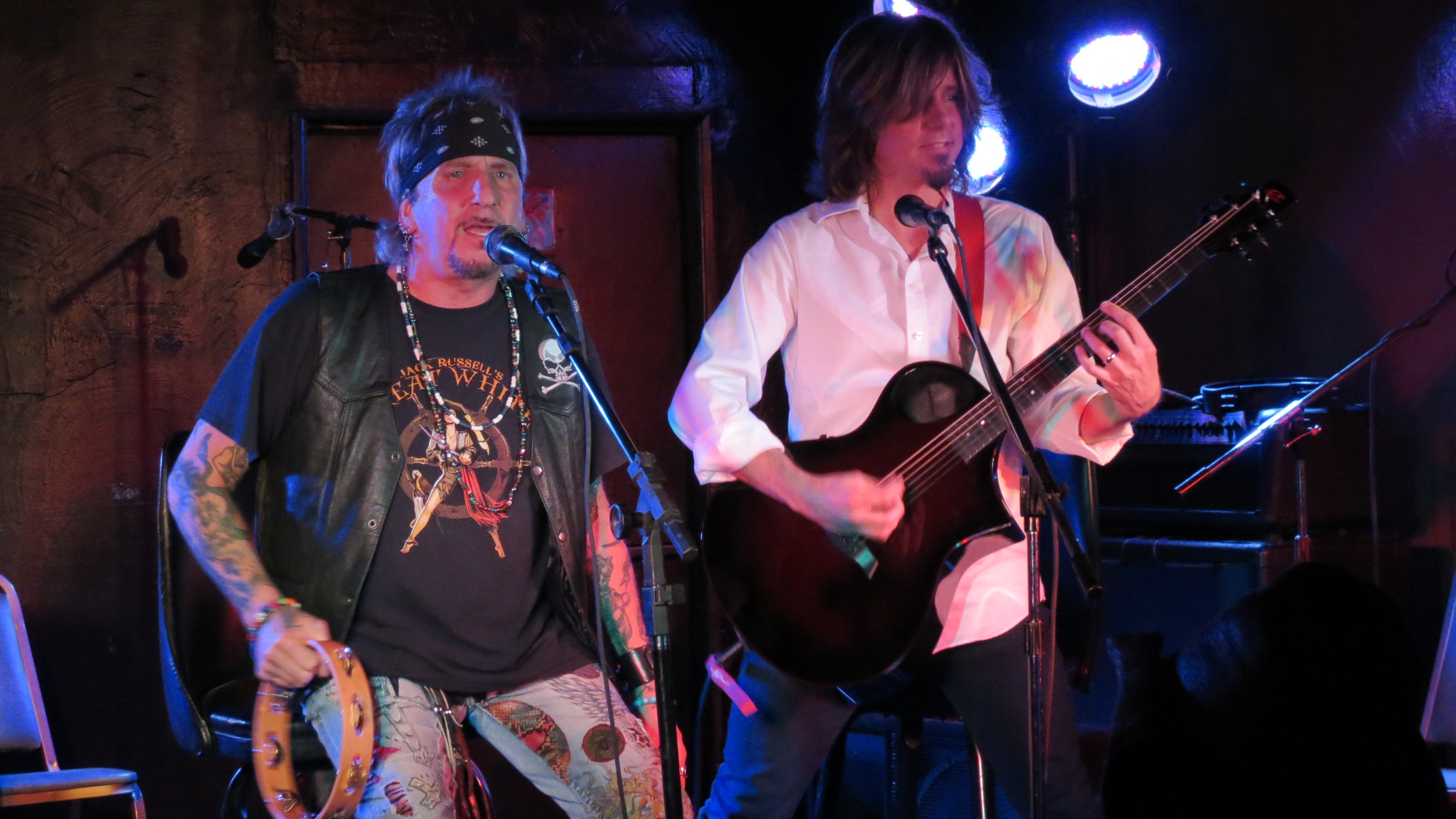 The grand opening at the Dead Horse Cantina & Music Hall on December 8, 2012 in McKees Rocks, PA was Jack Russell of Great White fame and this venue is perfect for the Storytellers type show that it was. In addition to playing Great White hits like “Rock Me” and “Once Bitten Twice Shy”, Jack also tackled some covers including “Old Man” by Neil Young, “Going to California” by Led Zeppelin and ending the show with “Jumpin’ Jack Flash” by the Rolling Stones. He had guitarist Robby Lochner at his side and he played the tambourine. After all these years that Jack has been performing, his voice is amazingly strong. He had a great time interacting with the crowd from joking around by saying at one point, “I’m not that cool, ask my wife” to which an audience member responded, “which one?” which gave Jack a good laugh to being very gracious and sentimental toward his fans saying how amazing it is that he has watched a lot of them grow up and thanking everyone for the e-mails and support during a recent hospitalization. It is quite obvious that he still loves what he does and that he loves his fans, at the end of the show he told the crowd that he would be back out to sign autographs, shake hands and take photos if people wanted to stick around.