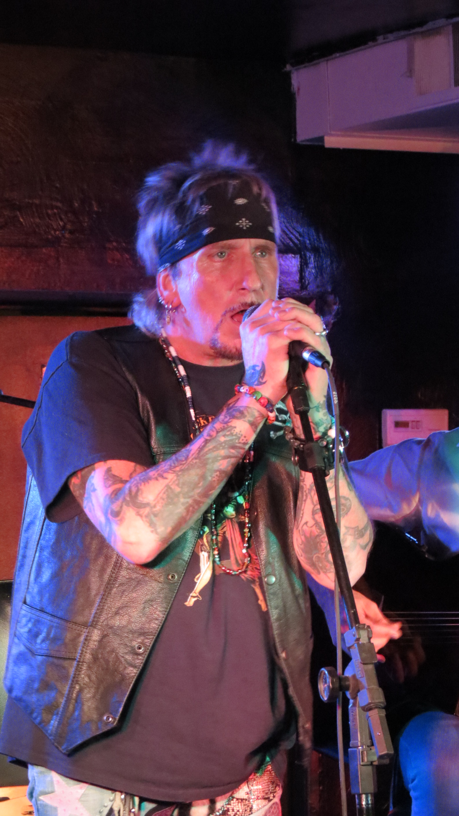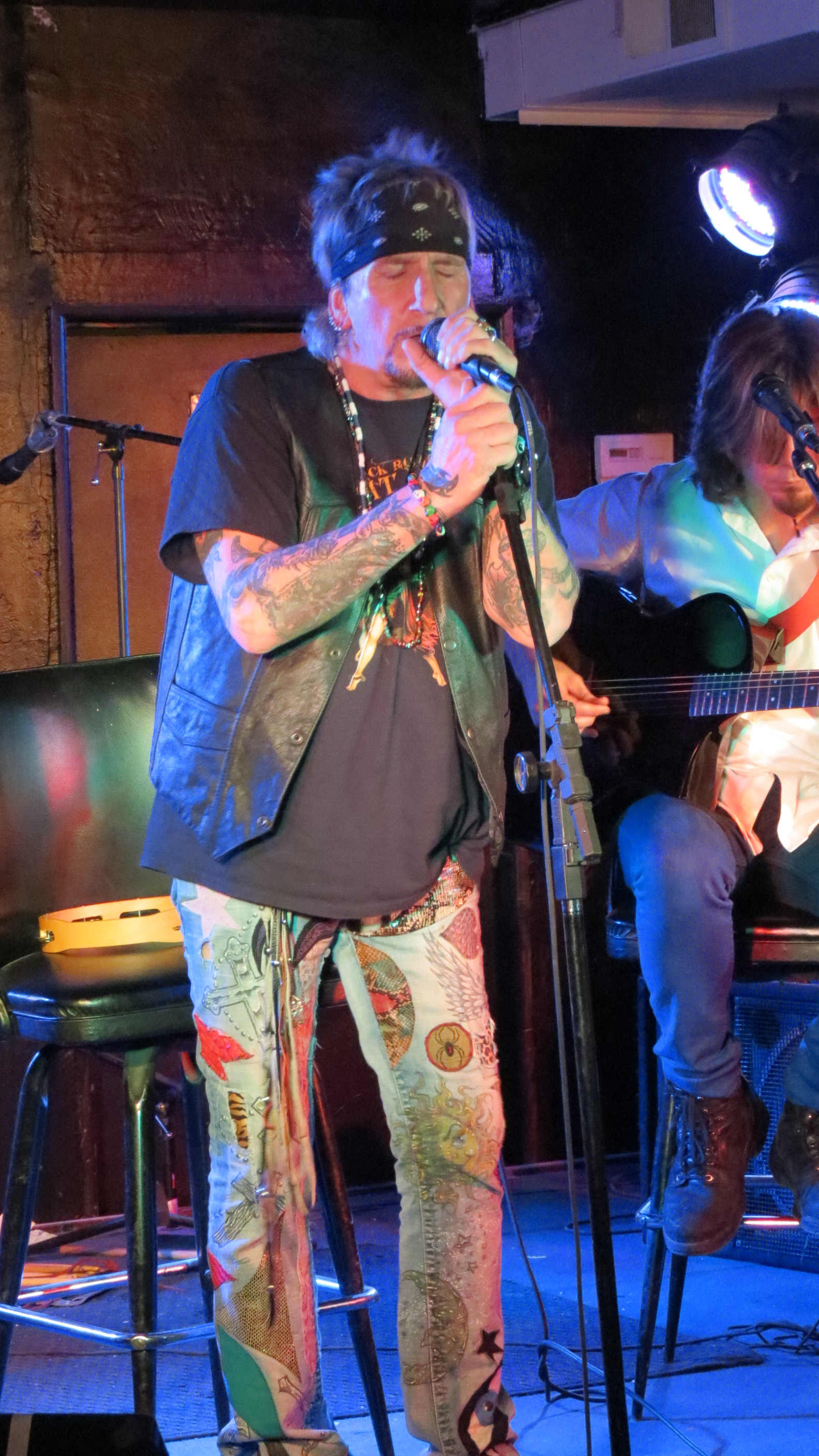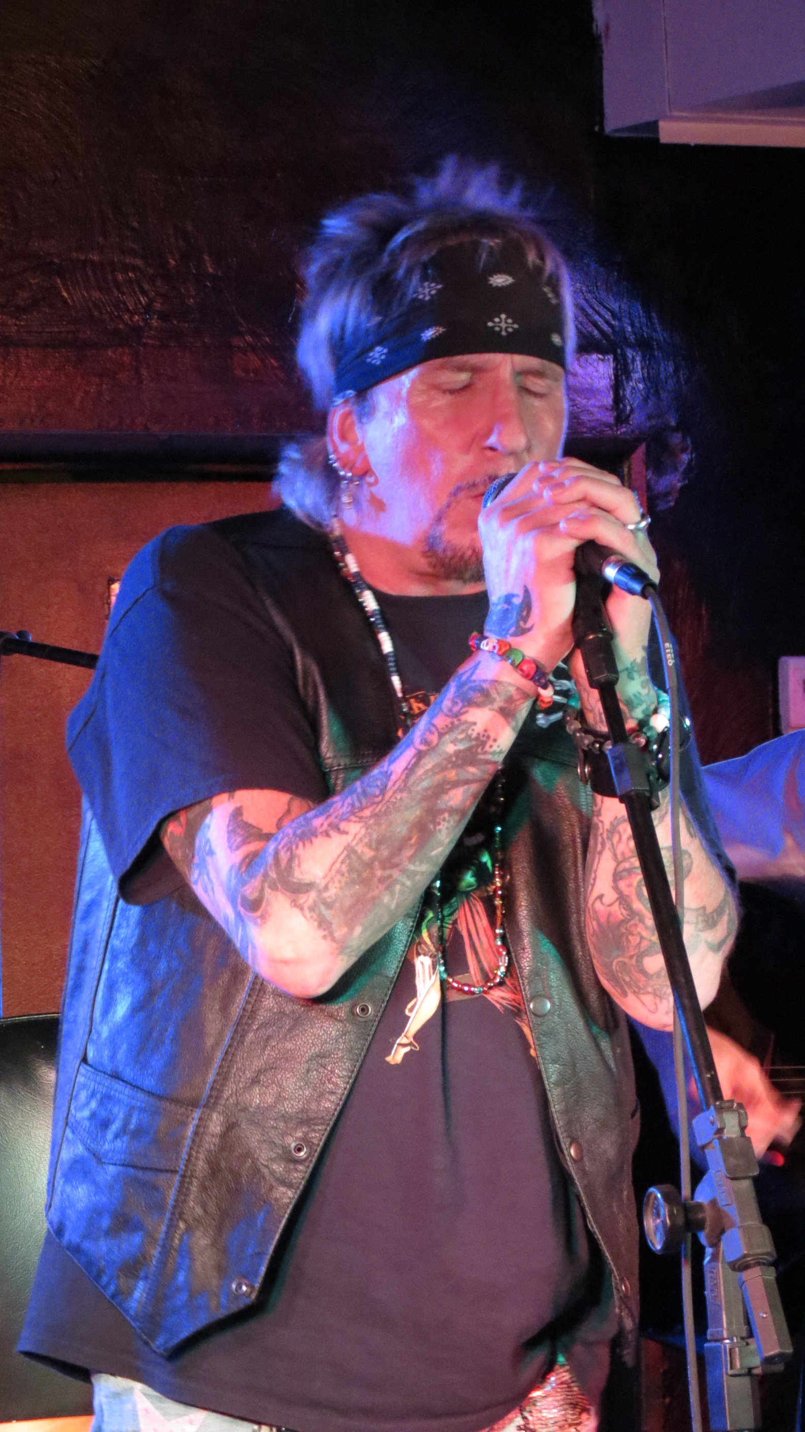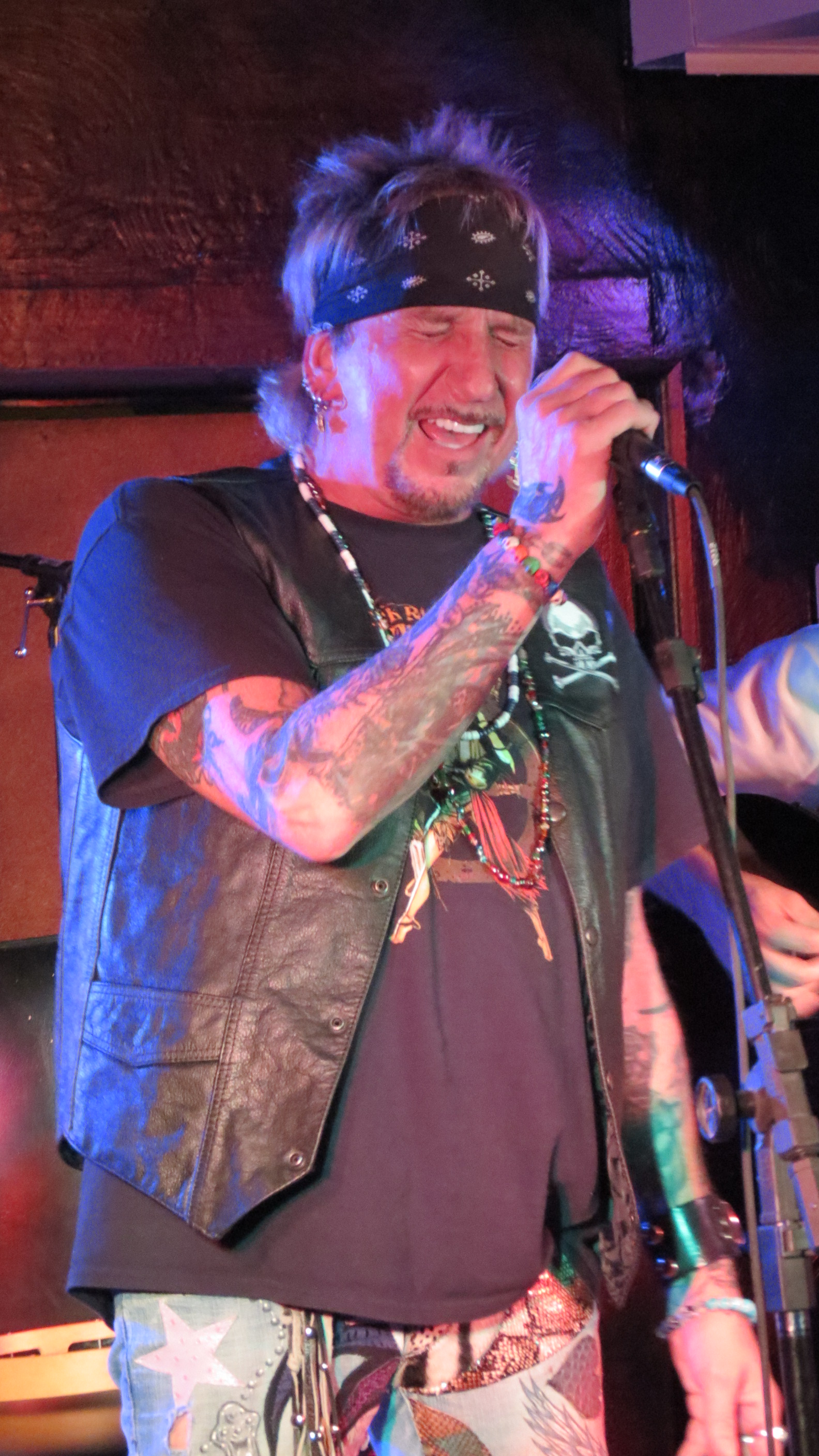 The grand opening at the Dead Horse Cantina & Music Hall on December 8, 2012 in McKees Rocks, PA was Jack Russell of Great White fame and this venue is perfect for the Storytellers type show that it was. In addition to playing Great White hits like “Rock Me” and “Once Bitten Twice Shy”, Jack also tackled some covers including “Old Man” by Neil Young, “Going to California” by Led Zeppelin and ending the show with “Jumpin’ Jack Flash” by the Rolling Stones. He had guitarist Robby Lochner at his side and he played the tambourine. After all these years that Jack has been performing, his voice is amazingly strong. He had a great time interacting with the crowd from joking around by saying at one point, “I’m not that cool, ask my wife” to which an audience member responded, “which one?” which gave Jack a good laugh to being very gracious and sentimental toward his fans saying how amazing it is that he has watched a lot of them grow up and thanking everyone for the e-mails and support during a recent hospitalization. It is quite obvious that he still loves what he does and that he loves his fans, at the end of the show he told the crowd that he would be back out to sign autographs, shake hands and take photos if people wanted to stick around.