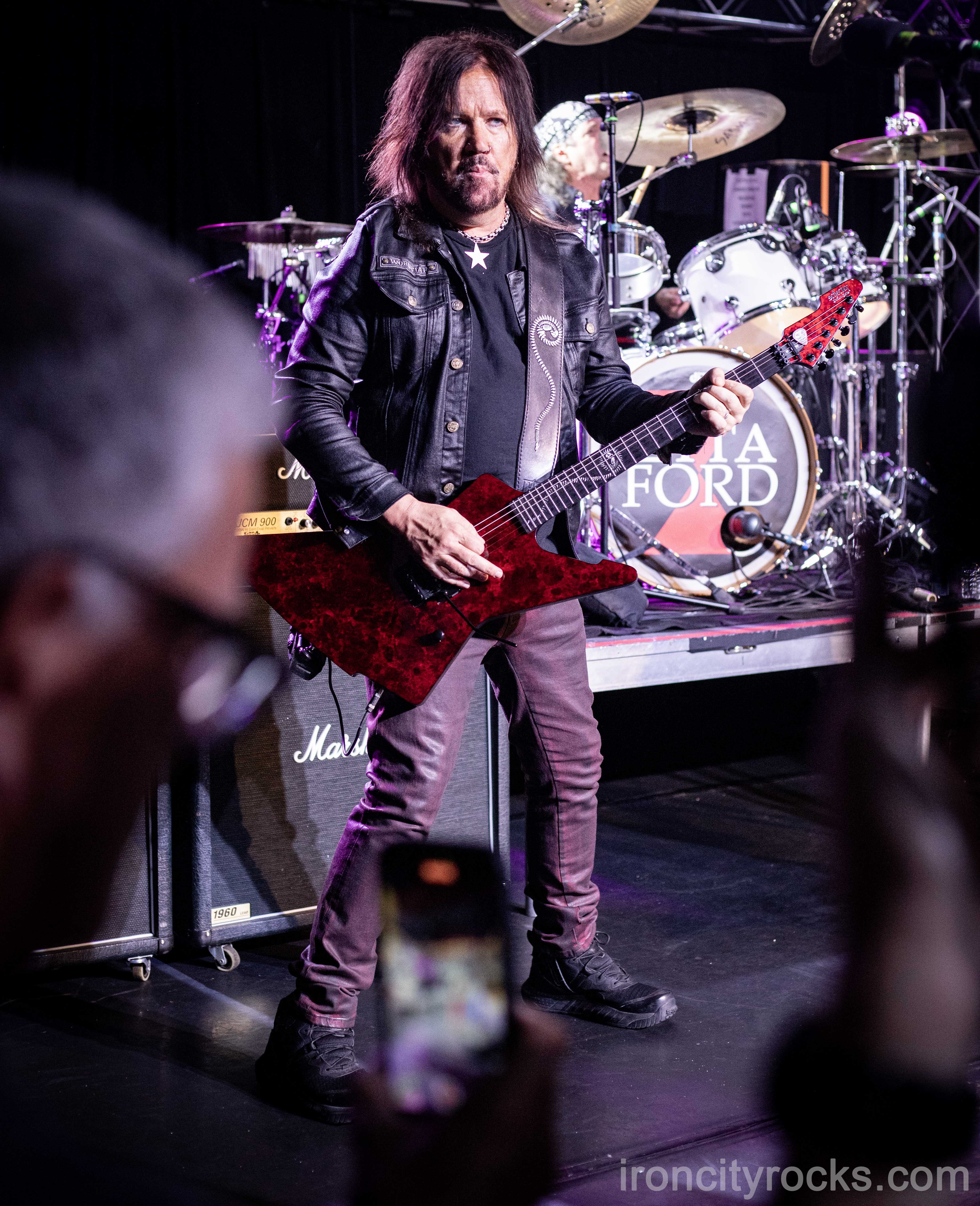 Right before 10pm it was time for Lita Ford to take stage opening with classic rocker “Gotta Let Go” and “Larger Than Life” before going into a couple more recent songs off of the “Living Like a Runaway” album. Next on the docket was a few sing along anthems “Playing with Fire” and “Back in the Cave” which also saw extended bass / guitar solos and lots of crowd interaction. A fired up Lita could be heard yelling out her infamous “Yeah Baby!” as the crowd returned the love for her timeless rock n roll on numerous occasions. Next up was Lita’s ode to the thrash scene with “Can’t Catch Me” following an absolute obliterating drum solo by the one and only Bobby Rock, who loves to play the light rack at Jergel’s as part of his moment to add some extra fire. Lita talked about her love to play at Jergel’s and the intimate feel of the venue – like a backyard party – before launching into a trio of covers “Cherry Bomb” (originally done by The Runaways, Lita’s first band), “Black Leather” (Sex Pistols) and “Only Women Bleed” (Alice Cooper). As the night was coming to an end it was time to honor the late and great Ozzy Osbourne (lighting the room with cellphones) who helped propel Lita’s solo career with the next song “Close My Eyes Forever” a mega hit ballad and duet with dueling guitars and heavy melody. The show closed out with “Kiss Me Deadly”.